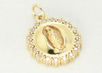 14k gold plated mariner chain with round diamond saint mary charm