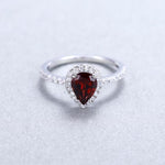 Sterling Silver Halo Ring 1.36Ct Natural Red Garnet