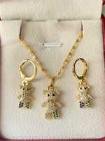 Elegant Gold Necklaces with Teddy Bear Set with Earrings: This gorgeous gold chain for man & women is MADE TO LAST with 14 karat Bonded gold fashion jewelry; Comes with Bonded Chain Necklace in gift bag or box.