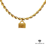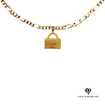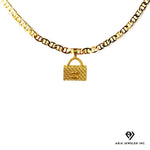 Elegant Gold Cuban Necklaces with Chanel Bag Charm : This gorgeous gold chain for man & women is MADE TO LAST with 14 karat bounded gold fashion jewelry; Comes with 4mm wide & 20 inches long Cuban Necklace in gift bag or box.