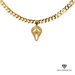 Elegant Gold Cuban Necklaces with Ghost Face Charm : This gorgeous gold chain for man & women is MADE TO LAST with 14 karat bounded gold fashion jewelry; Comes with 4mm wide & 20 inches long Cuban Necklace in gift bag or box.