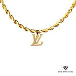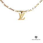 Elegant Gold Cuban Necklaces with LV Logo Charm : This gorgeous gold chain for man & women is MADE TO LAST with 14 karat bounded gold fashion jewelry; Comes with 4mm wide & 20 inches long Cuban Necklace in gift bag or box.