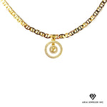 Elegant Gold Cuban Necklaces with LV Circle Charm : This gorgeous gold chain for man & women is MADE TO LAST with 14 karat bounded gold fashion jewelry; Comes with 4mm wide & 20 inches long Cuban Necklace in gift bag or box.