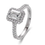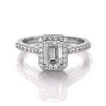 1.0Ct Classic Emerald Cut Moissanite Engagement Ring set in silver