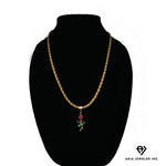 Gold Necklace with Red Rose Pendant