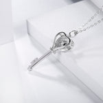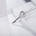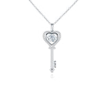 Silver Moissanite Heart Key Necklace